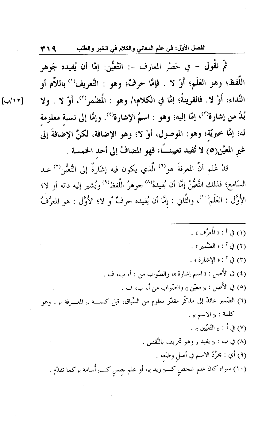 (¬6) الضّمير عائد إلى مذكّر مقدّر معلوم من السِّياق؛ قبل كلمة "المعرفة". وهو كلمة: "الاسم".
