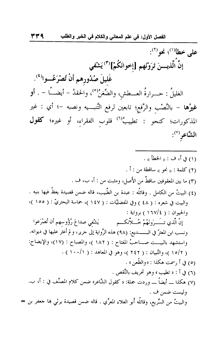 (¬7) هكذا -أيضًا- وردت جملة: "كقول الشاعر" ضمن كلام المصنِف في: أ، ب. وليست ضمن ف.