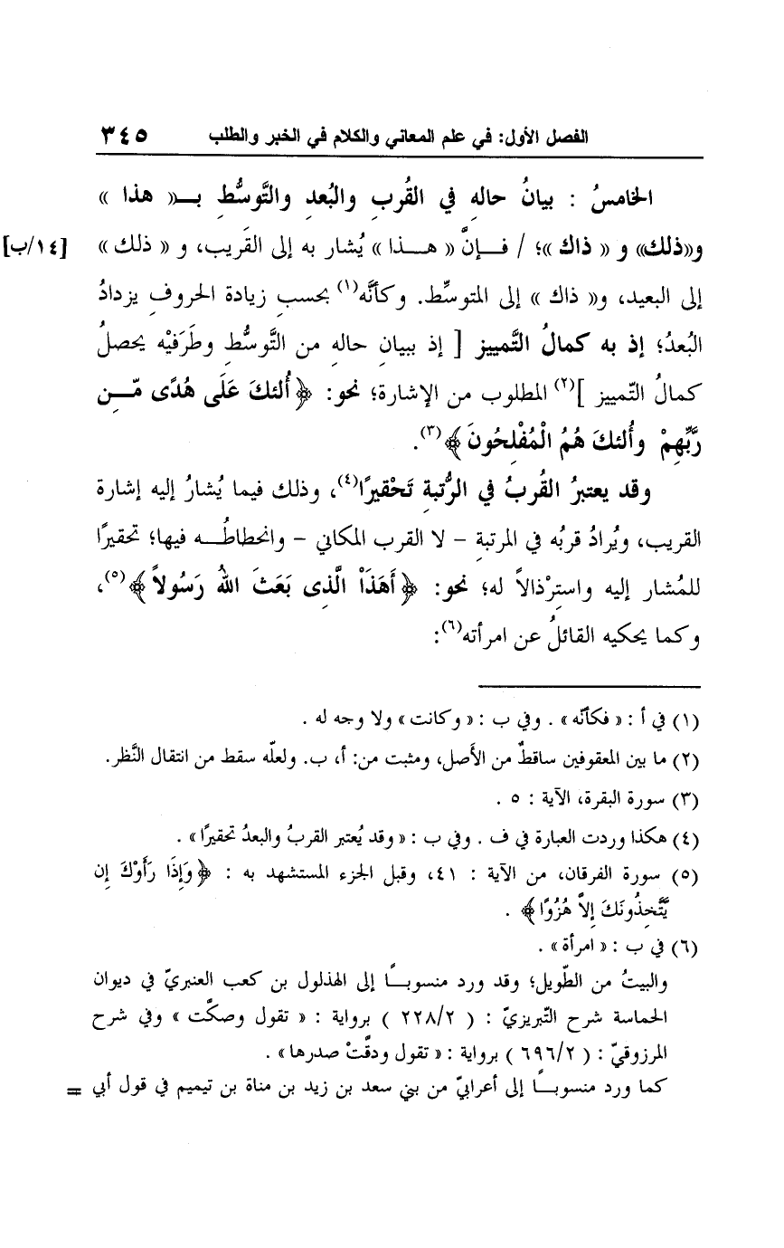(¬4) هكذا وردت العبارة في ف. وفي ب: "وقد يُعتبر القربُ والبعدُ تحقيرًا".