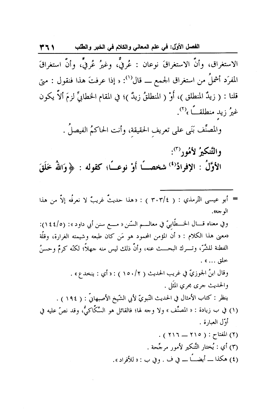 (¬1) في ب زيادة: "المصنِّف" ولا وجه لها؛ فالقائل هو السَّكَّاكيُّ، وقد نصّ عليه في أوّل العبارة.