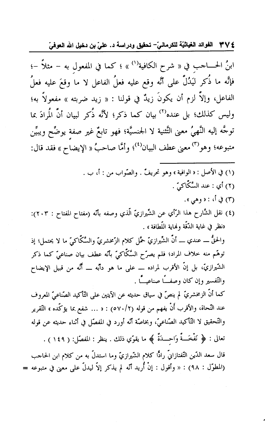 (¬4) نقل الشَّارح هذا الرّأي عن الشِّيرازيّ الذي وصفه بأنَّه (مفتاح المفتاح: 203): "نظر في غاية الدِّقّة ونهاية اللّطافة".