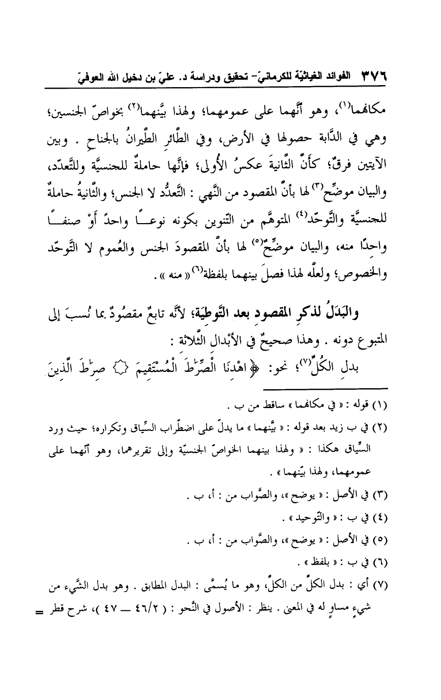 بدلِ الكُلِّ (¬7)؛ نحو: {اهْدِنَا الصِّرَاطَ الْمُسْتَقِيمَ (6) صِرَاطَ الَّذِينَ