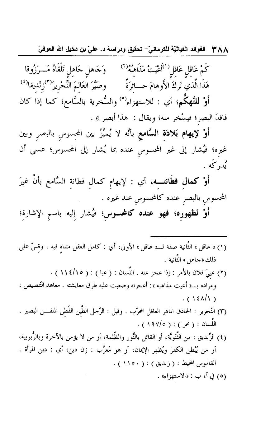 (¬1) "عاقل" الثَّانية صفة لـ "عاقل" الأولى، أي: كامل العقل متناهٍ فيه. وقِسْ على ذلك "جاهل" الثَّانية.