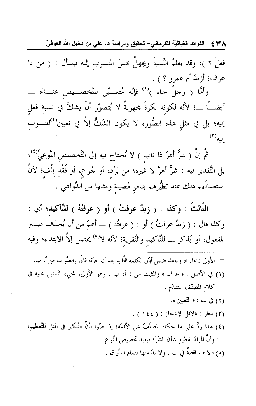 فعلَ؟)، وقد يعلمُ النِّسبةَ ويجهلُ نفسَ المنسوبِ إليه فيسأل: (من ذا عرف، أزيدٌ أم عمرو؟).