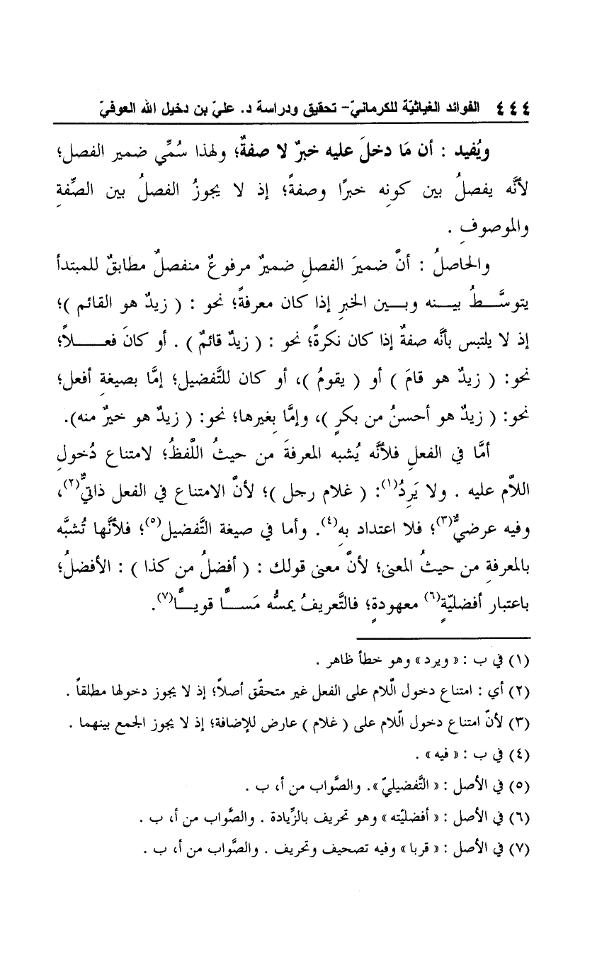 ويُفيد: أن مَا دخلَ عليه خبرٌ لا صفةٌ؛ ولهذا سُمِّي ضمير الفصل؛ لأنَّه يفصلُ بين كونِه خبرًا وصفةً؛ إذ لا يجوزُ الفصلُ بين الصِّفةِ والموصوفِ.