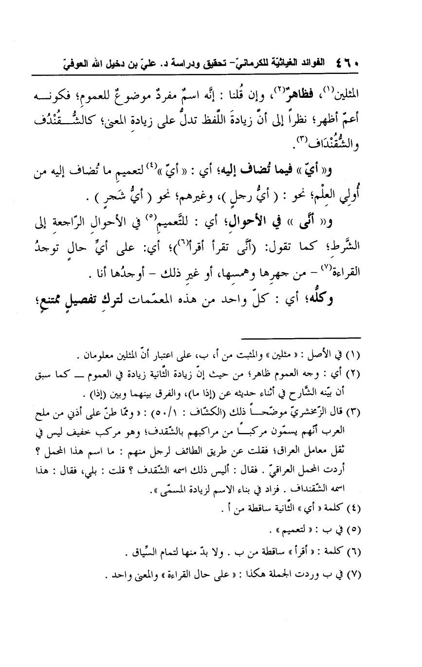و"أي" فيما تُضاف أليه؛ أي: "أيّ" (¬4) لتعميمِ ما تُضاف إليه من أُولِي العِلْم، نحو: (أيُّ رجلٍ)، وغيرهم كانحو (أيُّ شَجرٍ).