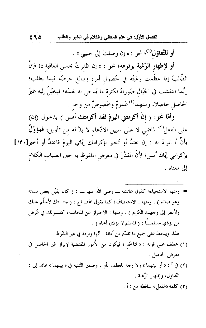 (¬2) في أ: "أو بينهما" ولا وجه للعطف بأو. وضمير التّثنية في "بينهما" عائد إلى: التّفاول، وإظهار الرَّغبة.