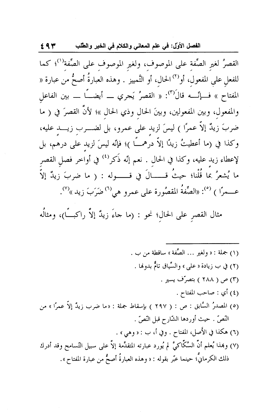 (¬5) المصدرُ السَّابق: ص: (297) بإسقاط جملة: "ما ضرب زيدٌ إلّا عمرًا" من النّصّ. حيث أوردها الشّارح قبل النّصّ.