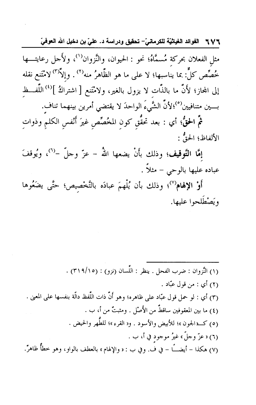 (¬7) هكذا -أيضًا- في ف. وفي ب: "والإلهام" بالعطف بالواو، وهو خطأٌ ظاهرٌ.