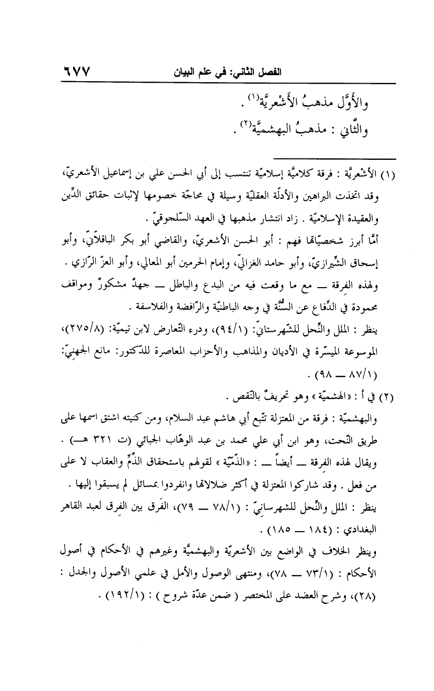 والأَوَّل مذهبُ الأَشْعريَّة (¬1).