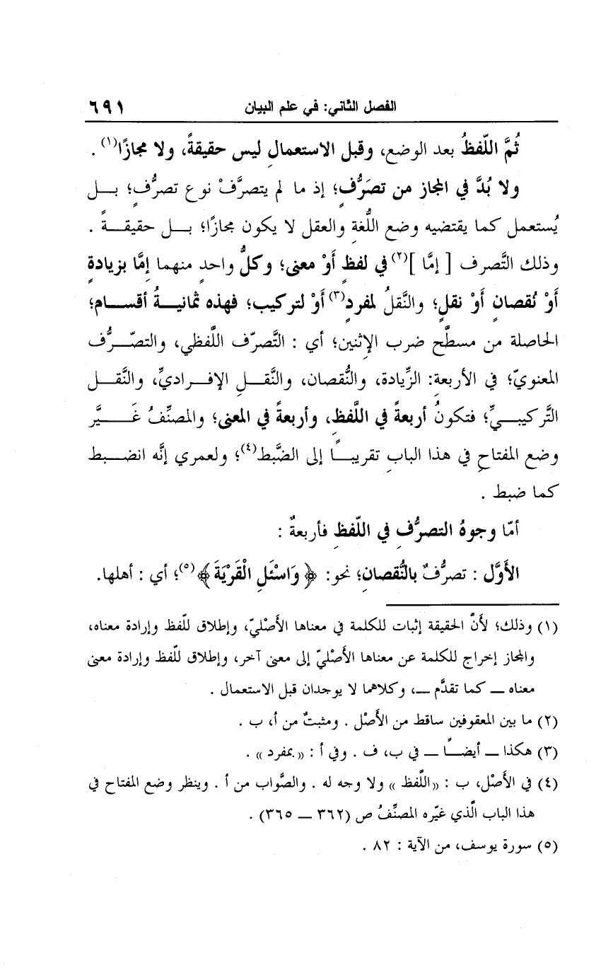 (¬4) في الأَصْل، ب: "اللفظ" ولا وجه له. والصَّواب من أ. وينظر وضع المفتاح في هذا الباب الذي غيّره المصنِّفُ ص (362 - 365).