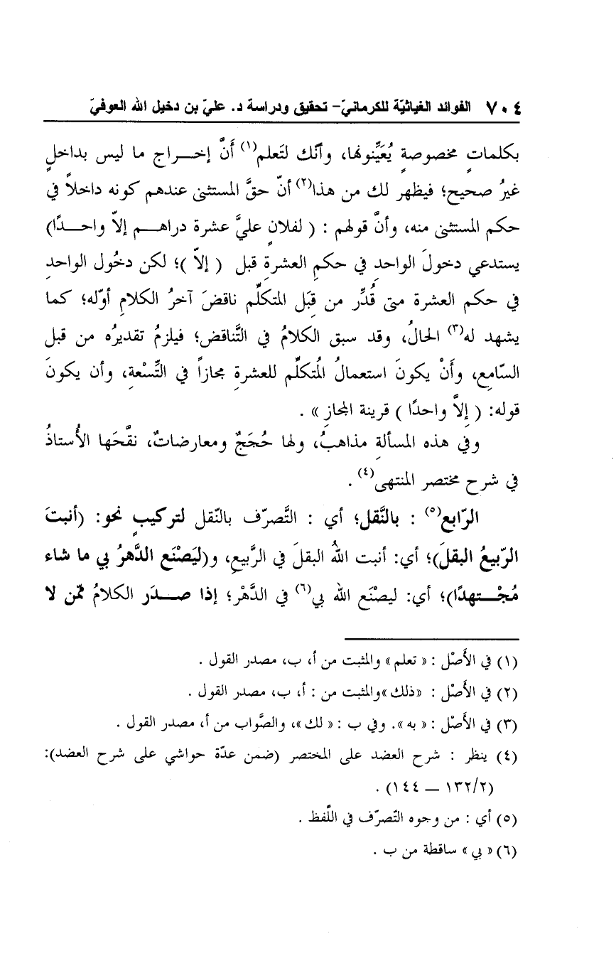 (¬4) ينظر: شرح العضد على المختصر (ضمن عدّة حواشي على شرح العضد): (2/ 132 - 144).