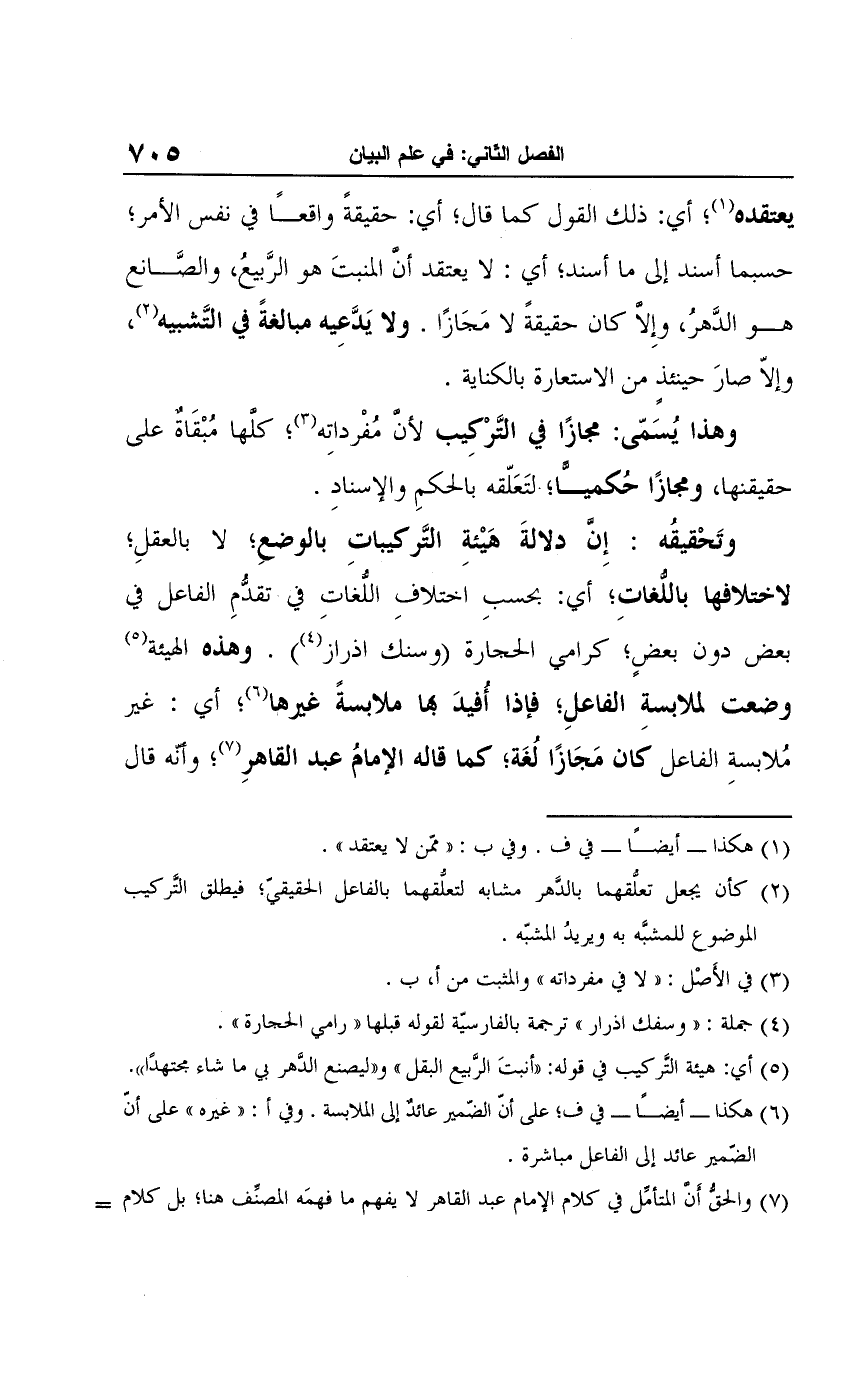 (¬7) والحقُّ أن المتأمِّل في كلام الإمام عبد القاهر لا يفهم ما فهمَه المصنِّف هنا؛ بل كلام=