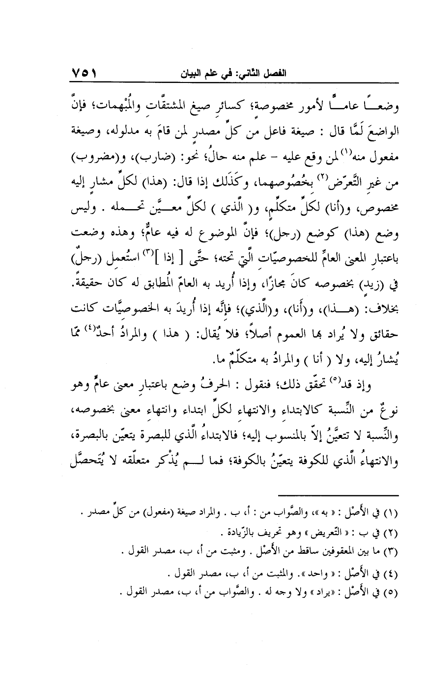 وإذ قد (¬5) تحقّق ذلك؛ فنقول: الحرفُ وضع باعتبارِ معني عام وهو نوعٌ من النِّسبة كالابتداءِ والانتهاءِ لكلِّ ابتداء وانتهاءِ معني بخصوصه، والنِّسبة لا تتعيَّنُ إلّا بالمنسوب إليه؛ فالابتداءُ الذي للبصرة يتعيّن بالبصرة، والانتهاءُ الذي للكوفة يتعيّنُ بالكوفة؛ فما لم يُذْكر متعلّقه لا يُتَحصَّل