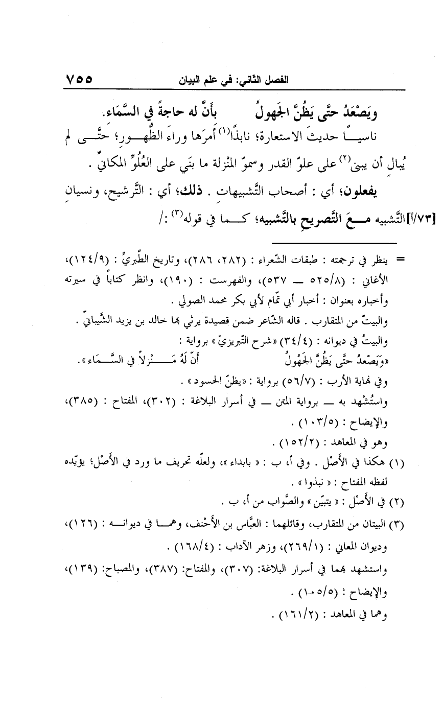 يفعلون؛ أي: أصحاب التَّشبيهاتِ. ذلك؛ أي: التَّرشيح، ونسيانِ التَّشبيه معَ التَّصريحِ بالتَّشبيه؛ كما في قوله (¬3):