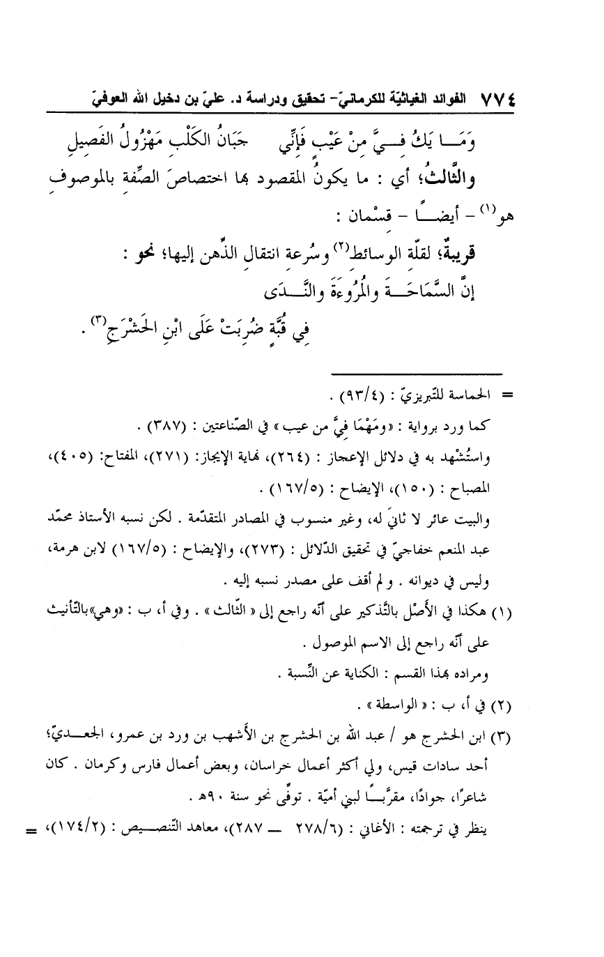 (¬3) ابن الحشرج هو عبد الله بن الحشرج بن الأَشهب بن ورد بن عمرو، الجعديّ؛ أحد سادات قيس، ولي أكثر أعمال خراسان، وبعض أعمال فارس وكرمان. كان شاعرًا، جوادًا، مقرَّبًا لبني أميّة. توفِّي نحو سنة 90 هـ.
