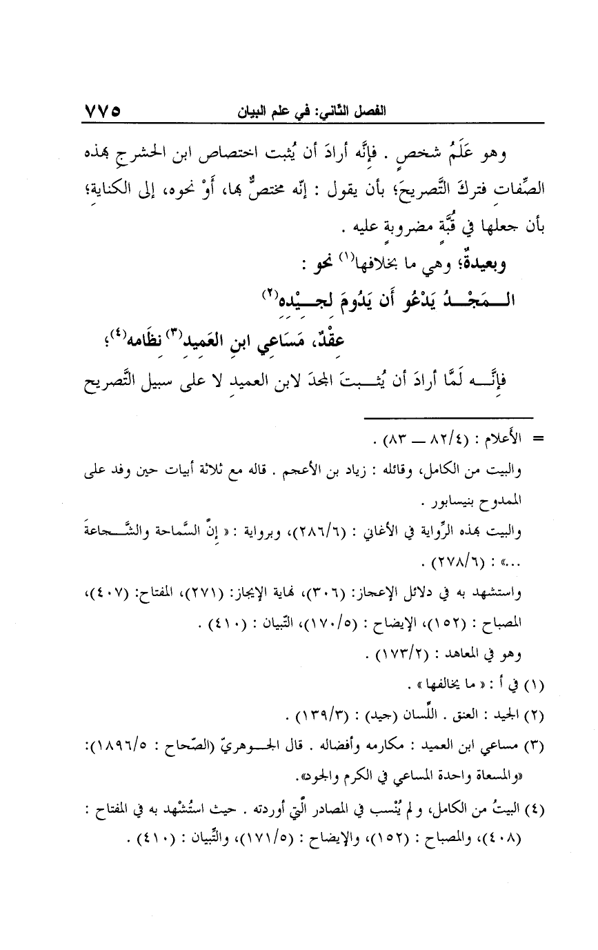 فإِنَّه لَمَّا أرادَ أن يُثبتَ المجدَ لابن العميدِ لا على سبيل التَّصريح