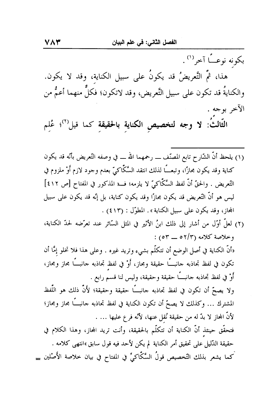 كما يشعر بذلك التّخصيص قولُ السَّكاكيِّ في المفتاح في بيان خلاصة الأَصْلين =