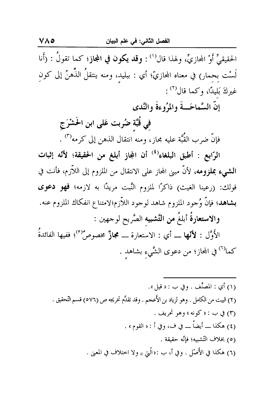 (¬5) بخلاف التّشبيه؛ فإنّه حقيقة.
