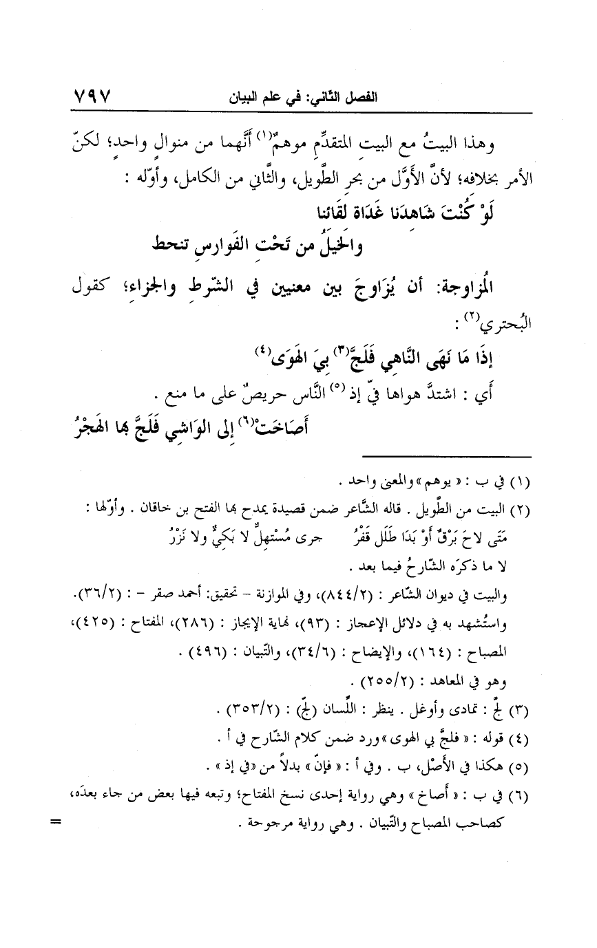 المُزاوجة: أن يُزَاوجَ بين معنيين في الشّرطِ والجزاءِ؛ كقول البُحتري (¬2):