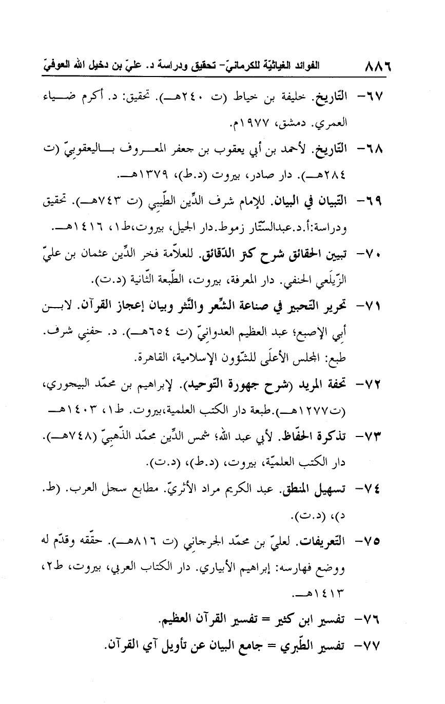 67 - التّاريخ. خليفة بن خياط (ت 240 هـ). تحقيق: د. أكرم ضياء العمري. دمشق، 1977 م.