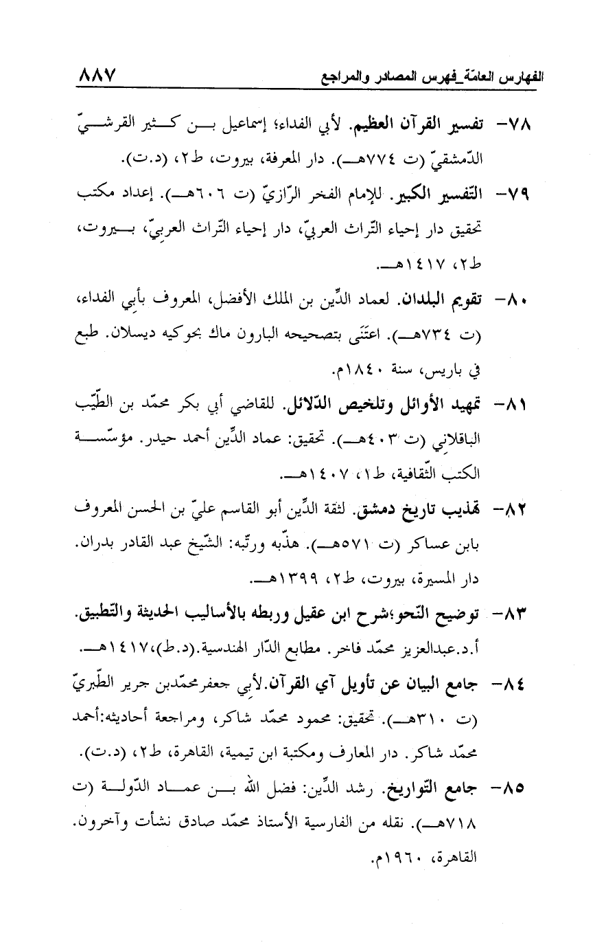 84 - جامع البيان عن تأويل آي القرآن. لأبِي جعفر محمّد بن جرير الطّبريّ (ت 310 هـ). تجقيق: محمود محمّد شاكر، ومراجعة أحاديثه: أَحْمد محمّد شاكر. دار المعارف ومكتبة ابن تيمية، القاهرة، ط 2، (د. ت).