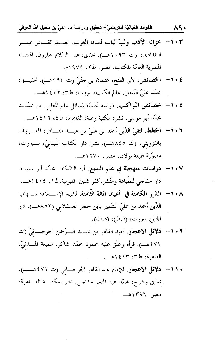 110 - دلائل الإعجاز. للإمام عبد القاهر الجرجانِي (ت 471 هـ). تعليق وشرح: محمّد عبد المنعم خفاجي. نشر: مكتبة القاهرة، مصر. 1396 هـ.