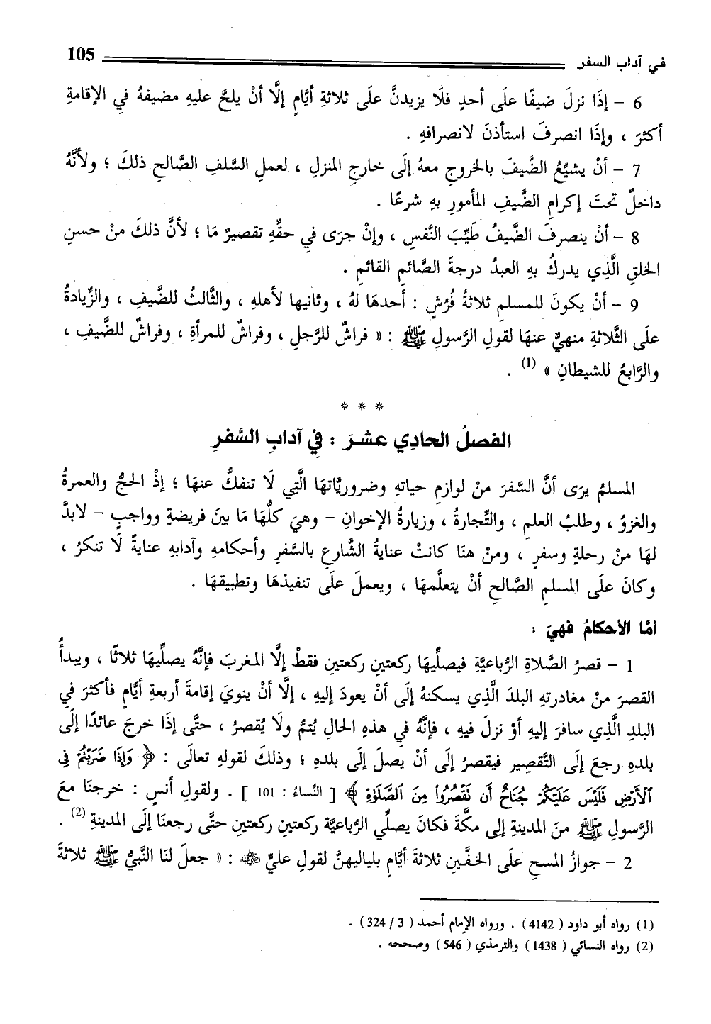 الفصلُ الحادِي عشرَ: فِي آدابِ السَّفرِ
