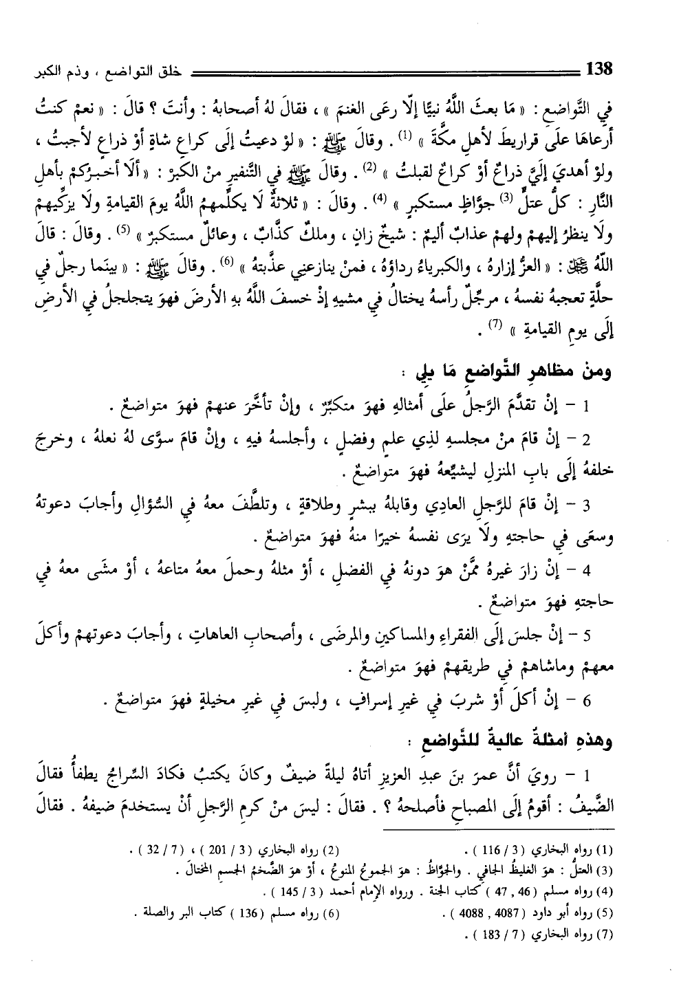 4 - إنْ زارَ غيرهُ ممَّنْ هوَ دونهُ فيِ الفضلِ، أوْ مثلهُ وحملَ معهُ متاعهُ، أوْ مشَى معهُ فيِ حاجتهِ فهوَ متواضعٌ.