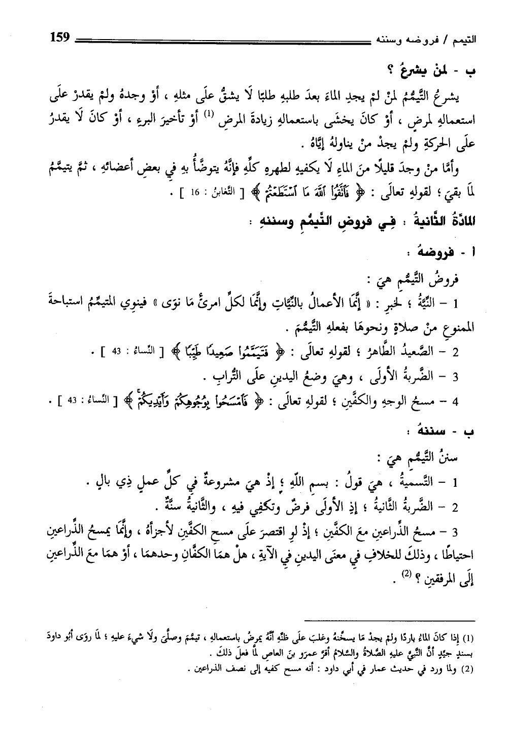المادَّةُ الثانيةُ: فِي فروضِ التَّيممِ وسننهِ: