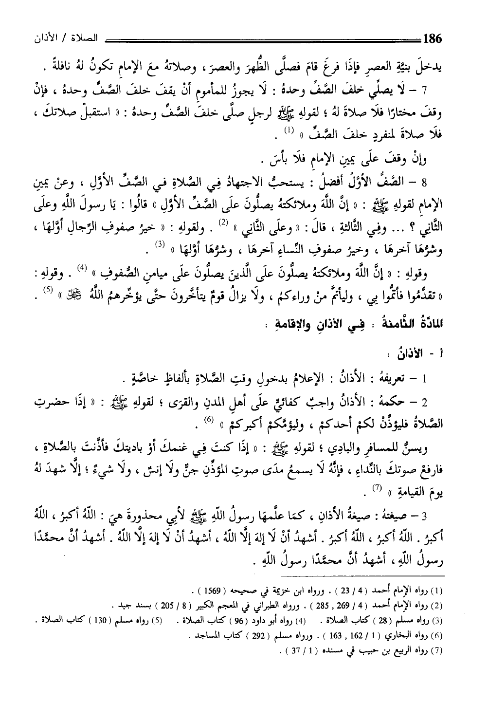 المادةُ الثامنةُ: فِي الأذانِ والإقامةِ: