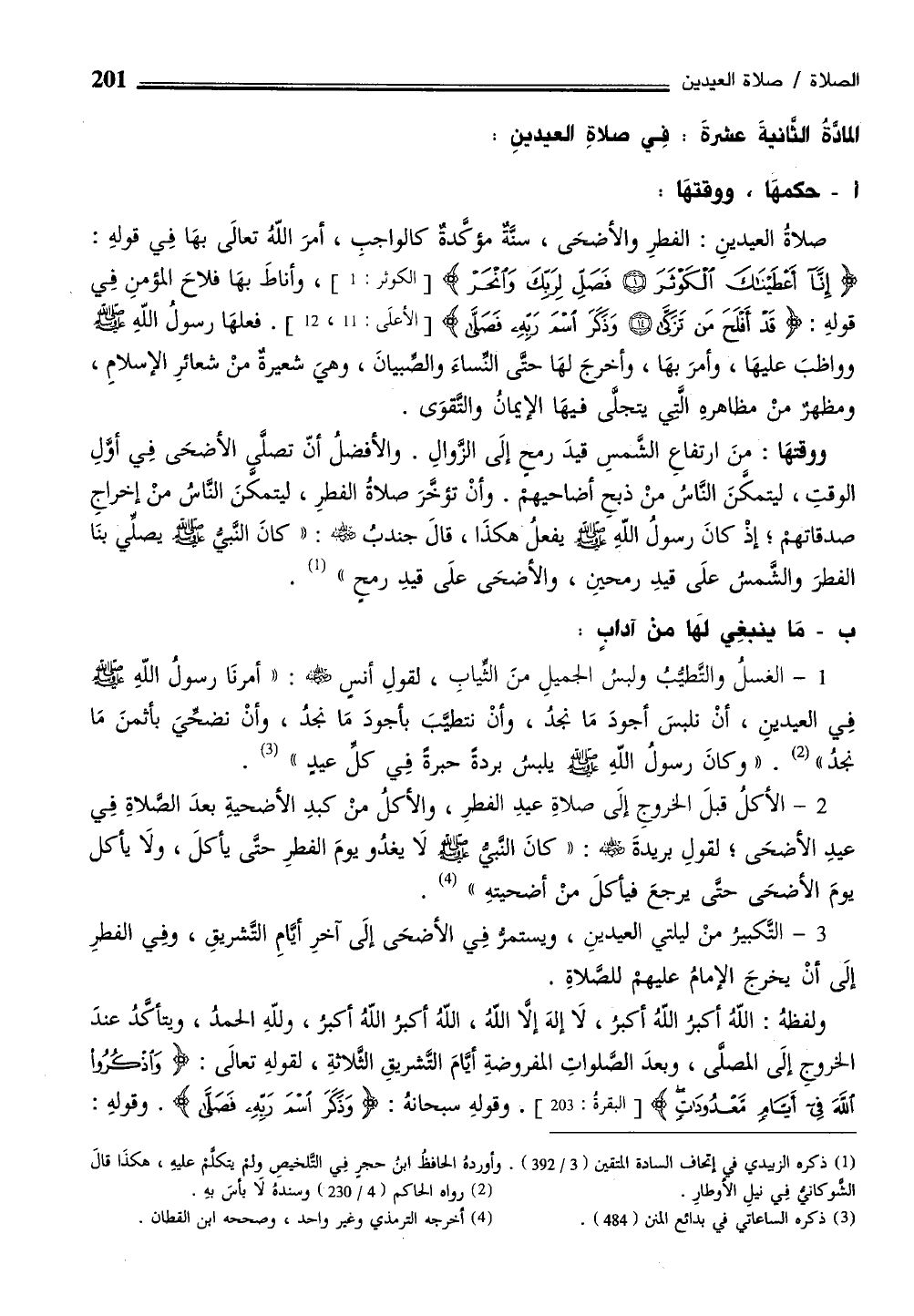 المادَّةُ الثانيةَ عشرةَ: فِي صلاةِ العيدينِ: