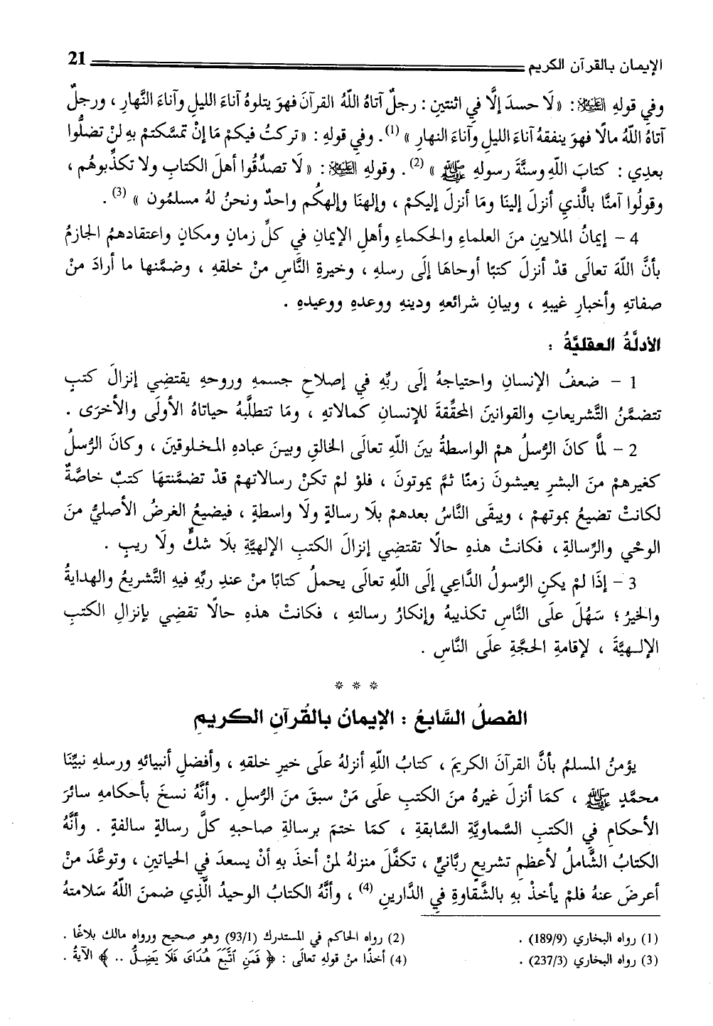 الفصلُ السَّابعُ: الإيمانُ بالقُرآنِ الكريمِ