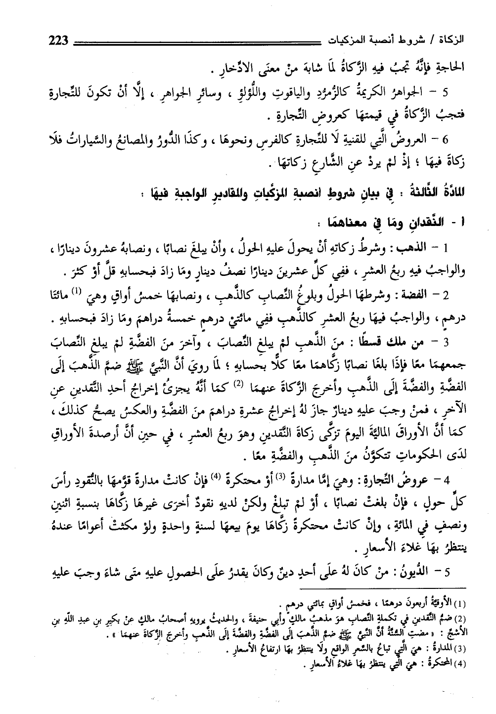 المادَّة الثَّالثةُ: فِي بيانِ شروطِ أنصبةِ المزكَّياتِ والمقاديرِ الواجبةِ فيها: