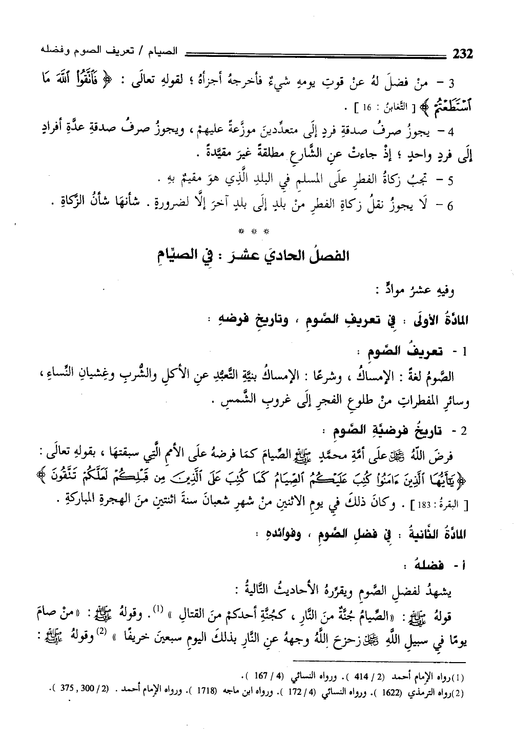 المادَّةُ الأولَى: فِي تعريفِ الصومِ، وتاريخ فرضهِ: