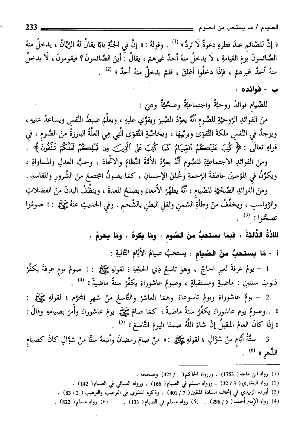 المادَّة الثالثةُ: فيمَا يستحب منَ الصومِ، ومَا يكرهُ، ومَا يحرمُ.
