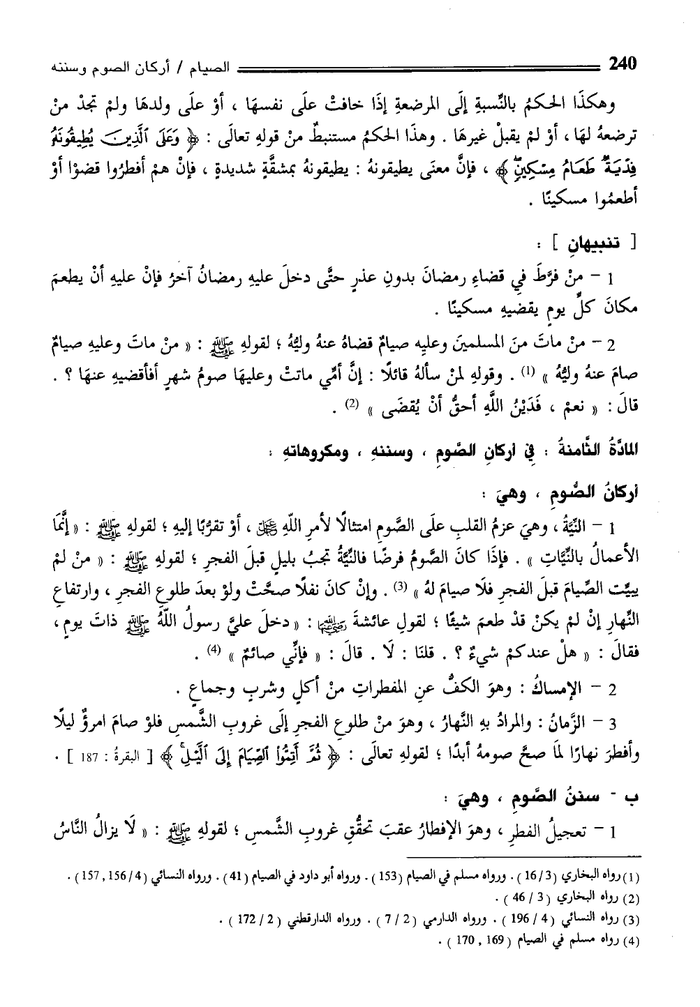 المادَّةُ الثامنةُ: فِي أركانِ الصومِ، وسننهِ، ومكروهاتهِ: