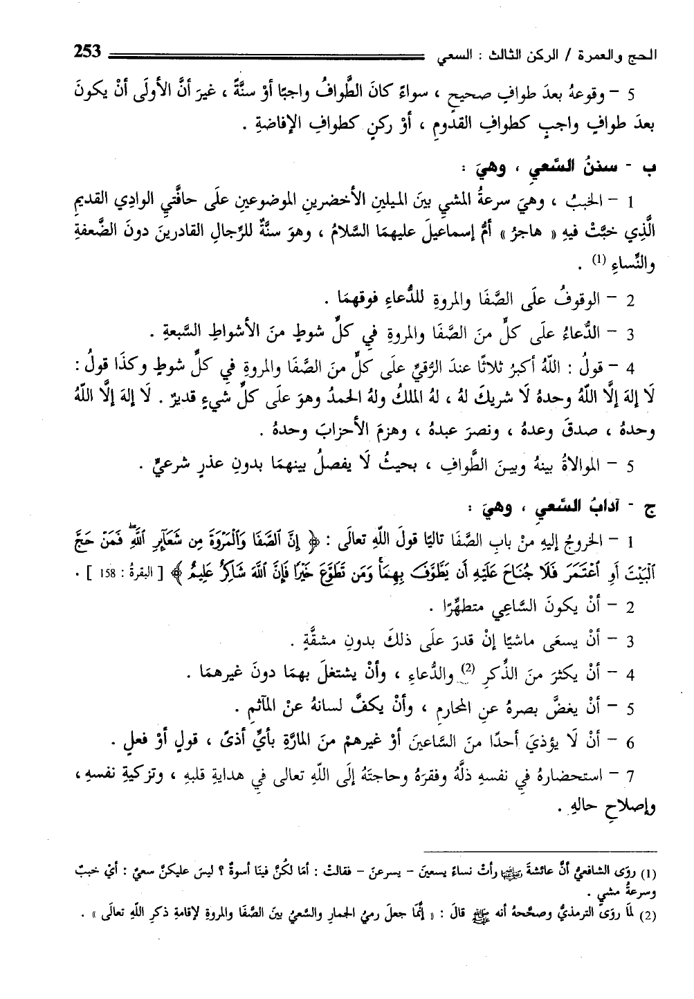 ب- سننُ السعيِ، وهيَ: