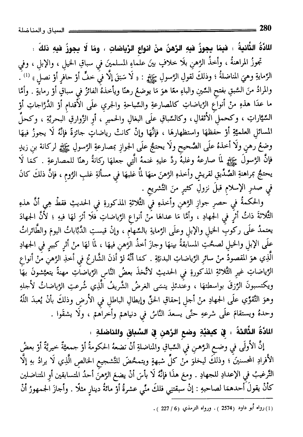 المادَّةُ الثُّانيةُ: فيمَا يجوزُ فيهِ الرهنُ من أنواعِ الرياضاتِ، ومَا لا يجوزُ فيهِ ذلكَ: