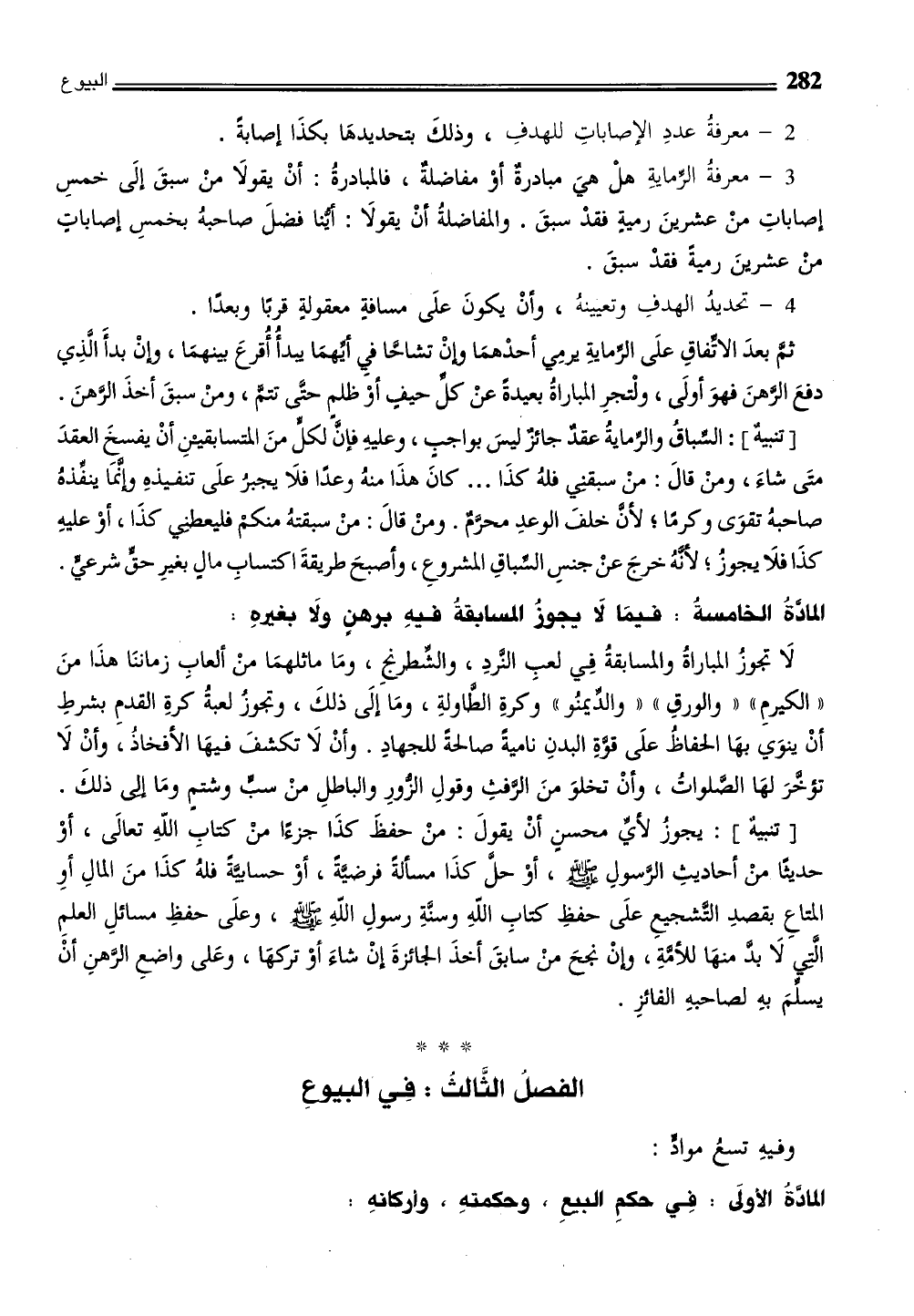 الفصلُ الثَّالث: فِي البيوعِ