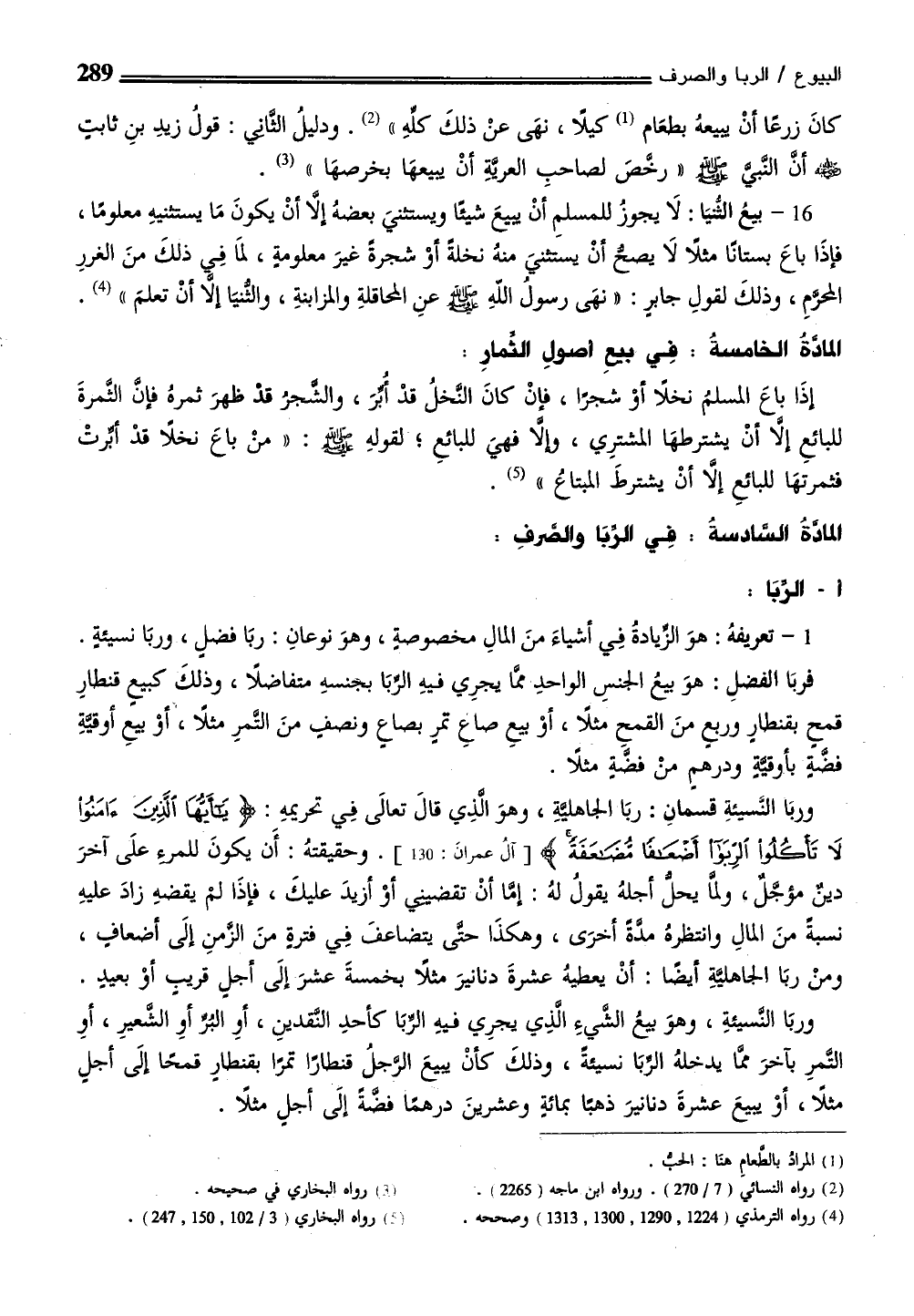 المادَّةُ السادسةُ: فِي الرِّبَا والصرفِ: