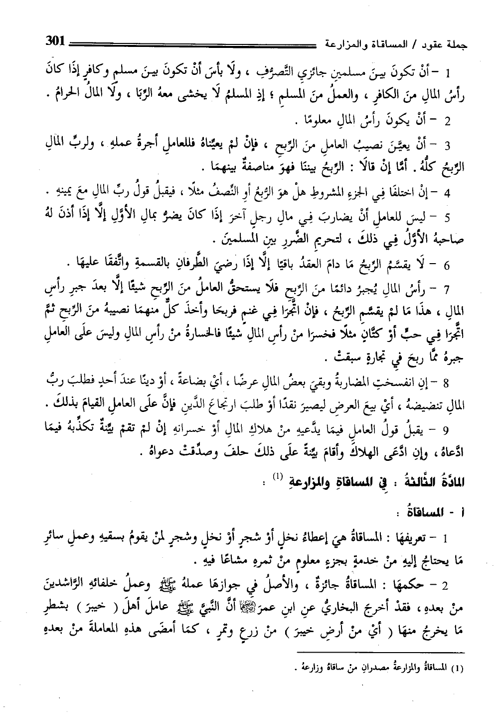 (¬1) المساقاةُ والمزارعةُ مصدرانِ من ساقاهُ وزارعهُ.