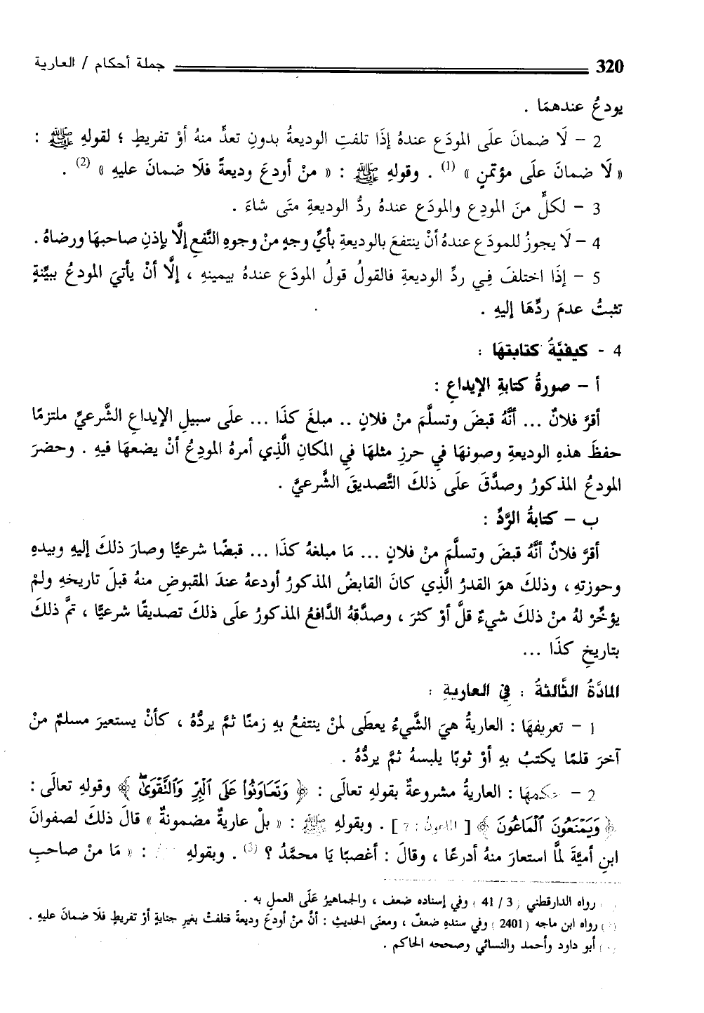 (¬2) رواه ابن ماجه (2401) وفي سندهِ ضعف، ومعنَى الحديثِ: أنْ منْ أودعَ وديعة فتلفت بغيرِ جنايه أو تفريطٍ فلَا ضمانَ عليهِ.