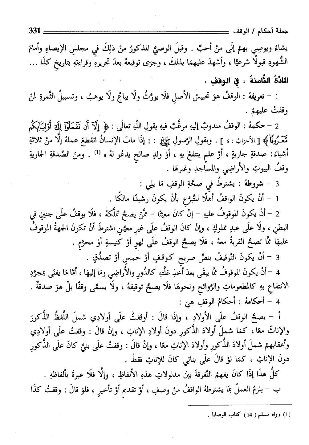 المادَّة الثامنة: فِي الوقفِ: