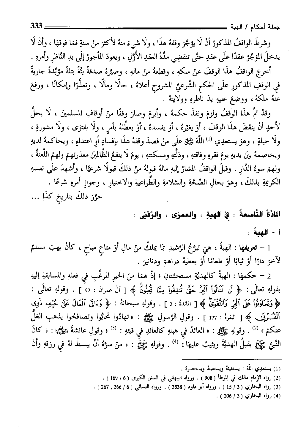 المادةُ التاسعةُ: فِي الهبةِ، والعمرَى، والرُّقبَى:
