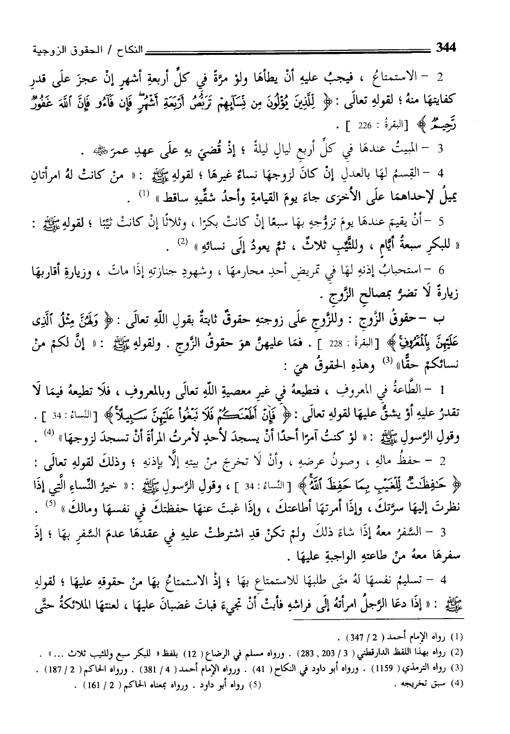 4 - تسليم نفسهَا لهُ متَى طلبهَا للاستمتاعِ بهَا؛ إذْ الاستمتاعُ بهَا منْ حقوقهِ عليهَا؛ لقولهِ - صلى الله عليه وسلم -: "إذَا دعَا الرجلُ امرأتهُ إلَى فراشهِ فأبتْ أنْ تجيءَ فباتَ غضبانَ عليهَا، لعنتهَا الملائكةُ حتَّى
