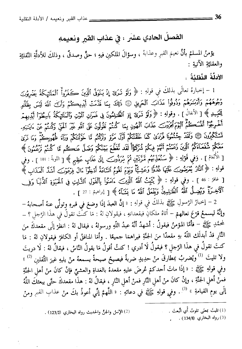 الفصلُ الحادِي عشرَ: فِي عذابِ القبرِ ونعيمهِ