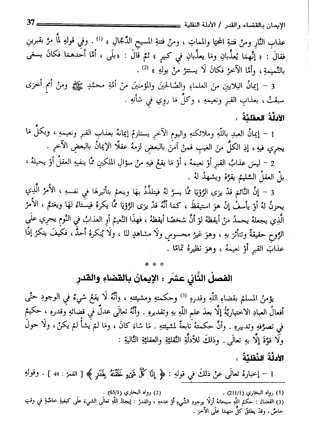 الفصلُ الثَانِي عشرَ: الإيمانُ بالقضاءِ والقدرِ