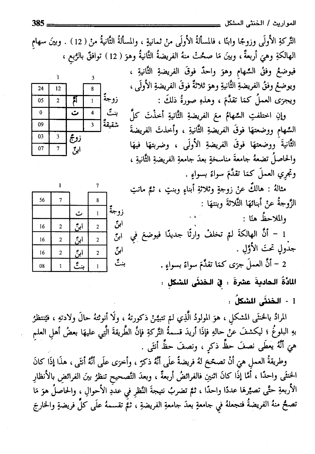 المادةُ الحاديةَ عشرةَ: فِي الخنثَى المشكلِ:
