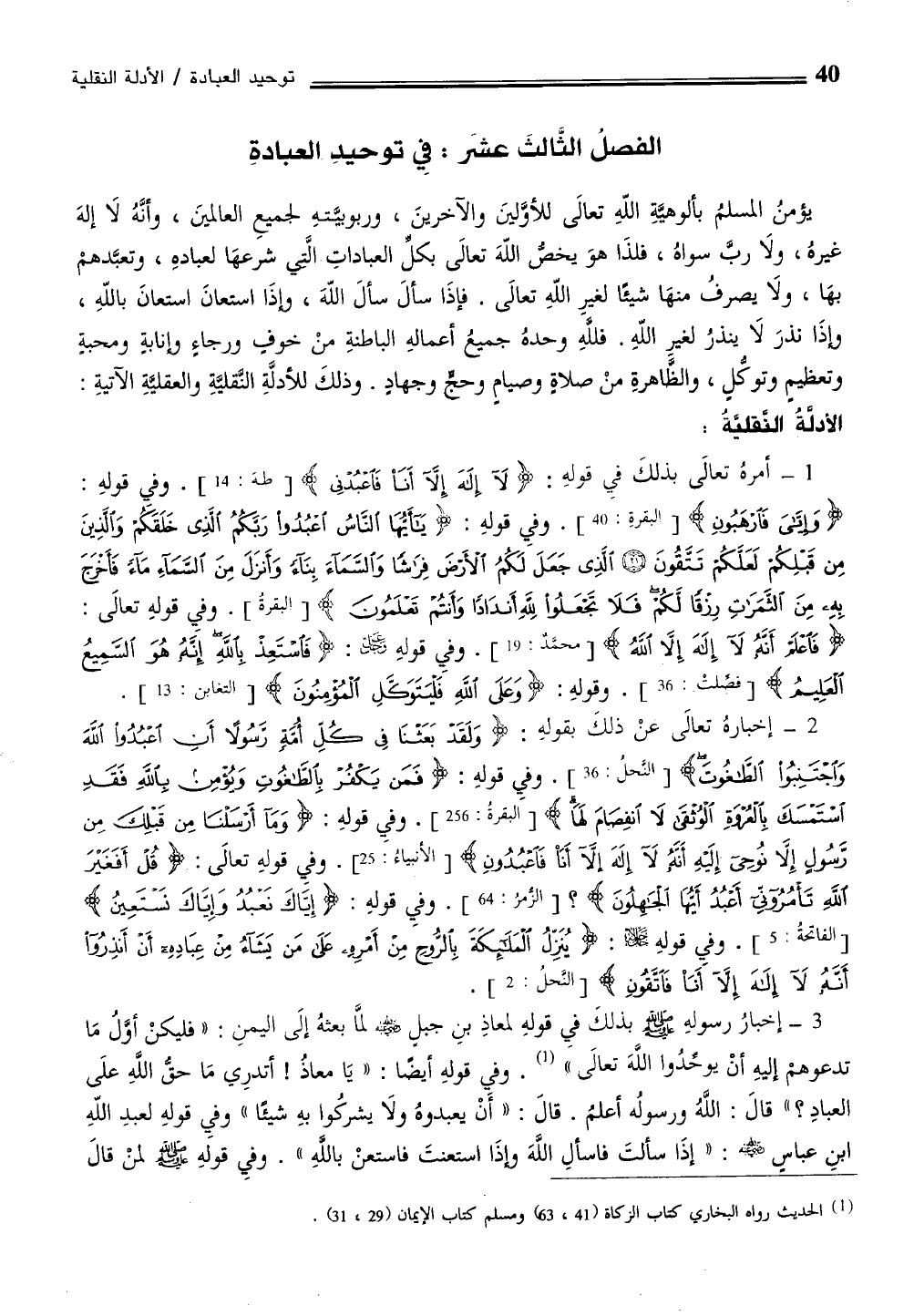 الفصلُ الثَّالثَ عشرَ: فِي توحيدِ العبادةِ